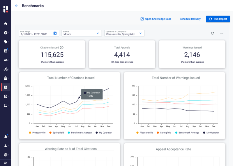 Performance Benchmarking data empowers cities to gain a comprehensive understanding of their parking landscape. By collecting and analyzing relevant data points, cities can view and act on specific parking and enforcement challenges. Understanding these market trends allows cities to identify current challenges in their environment and pinpoint areas that need improvement.