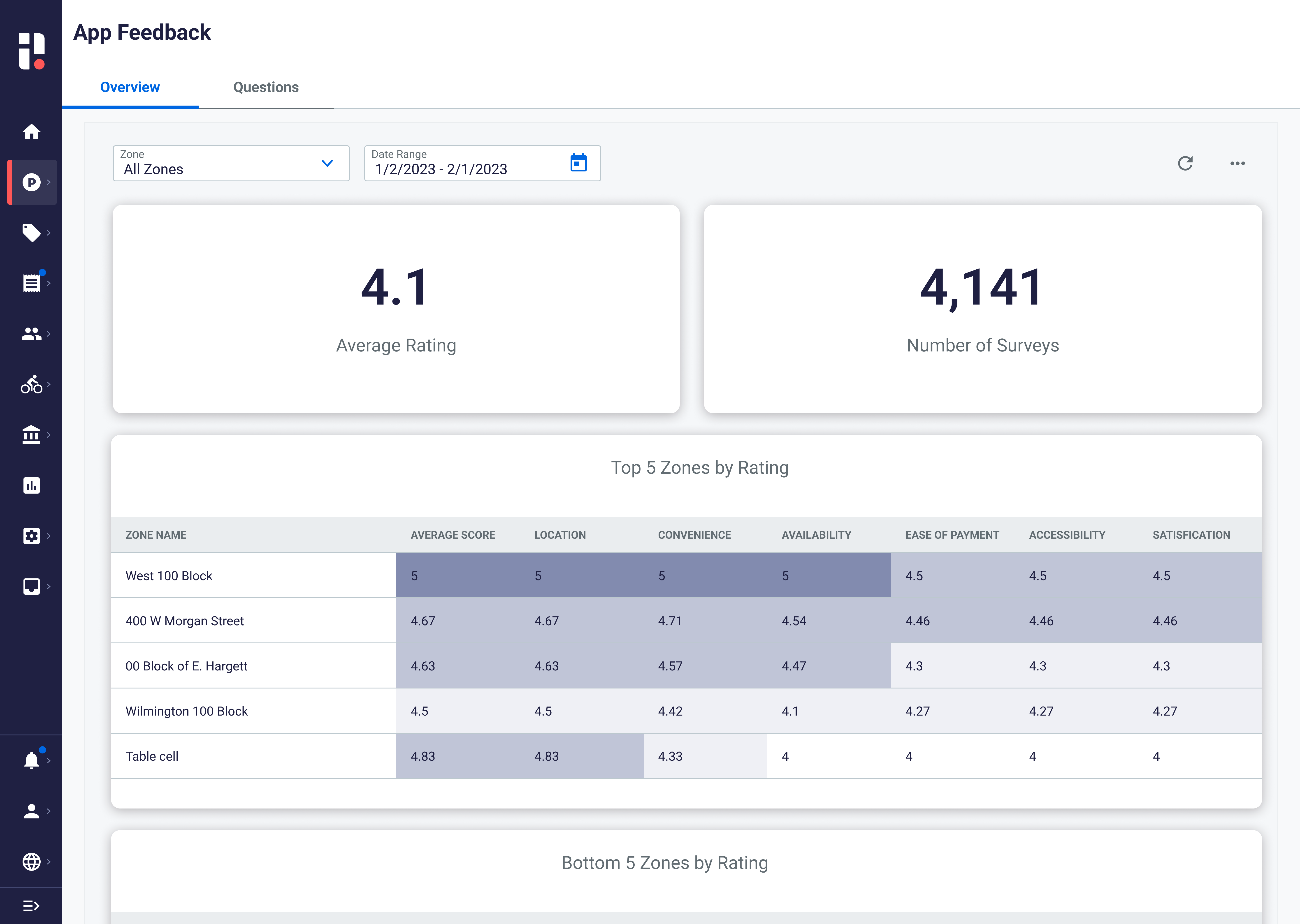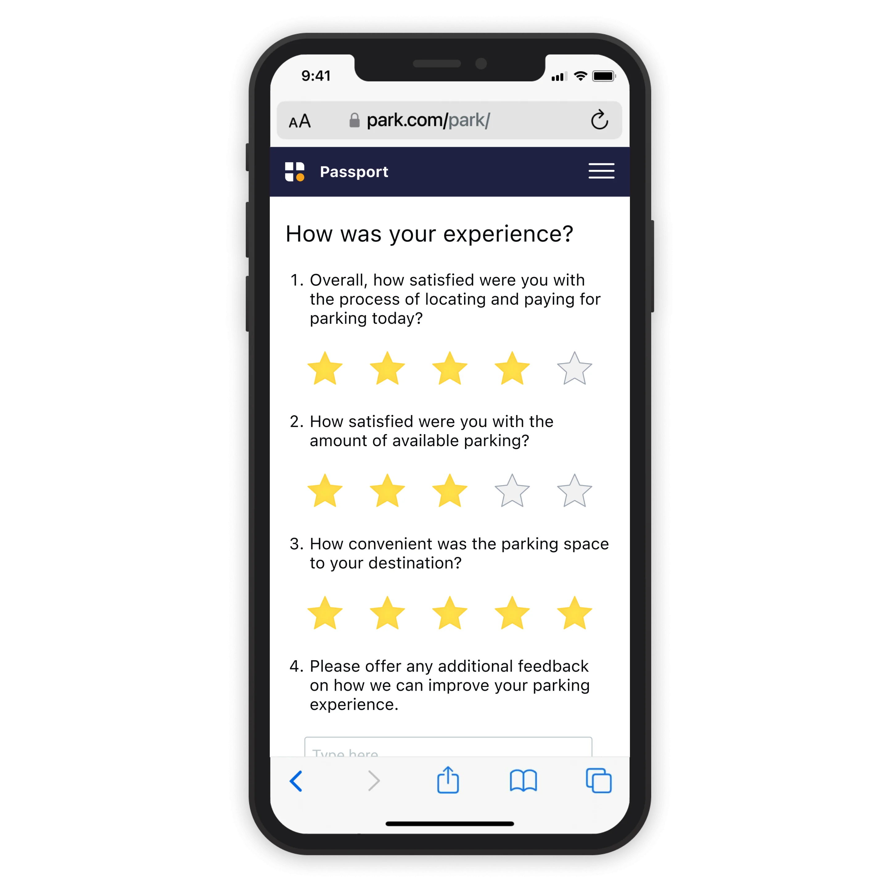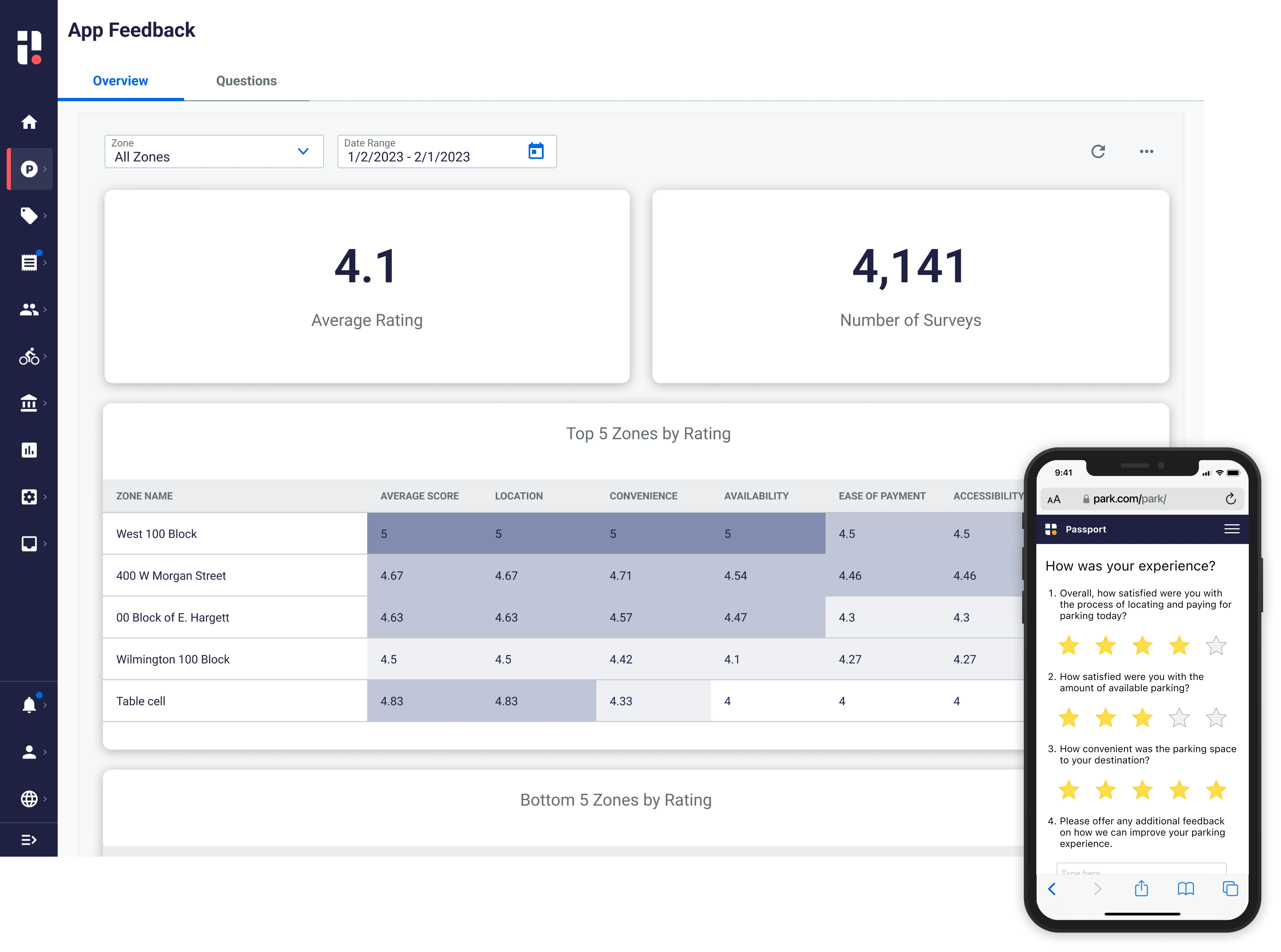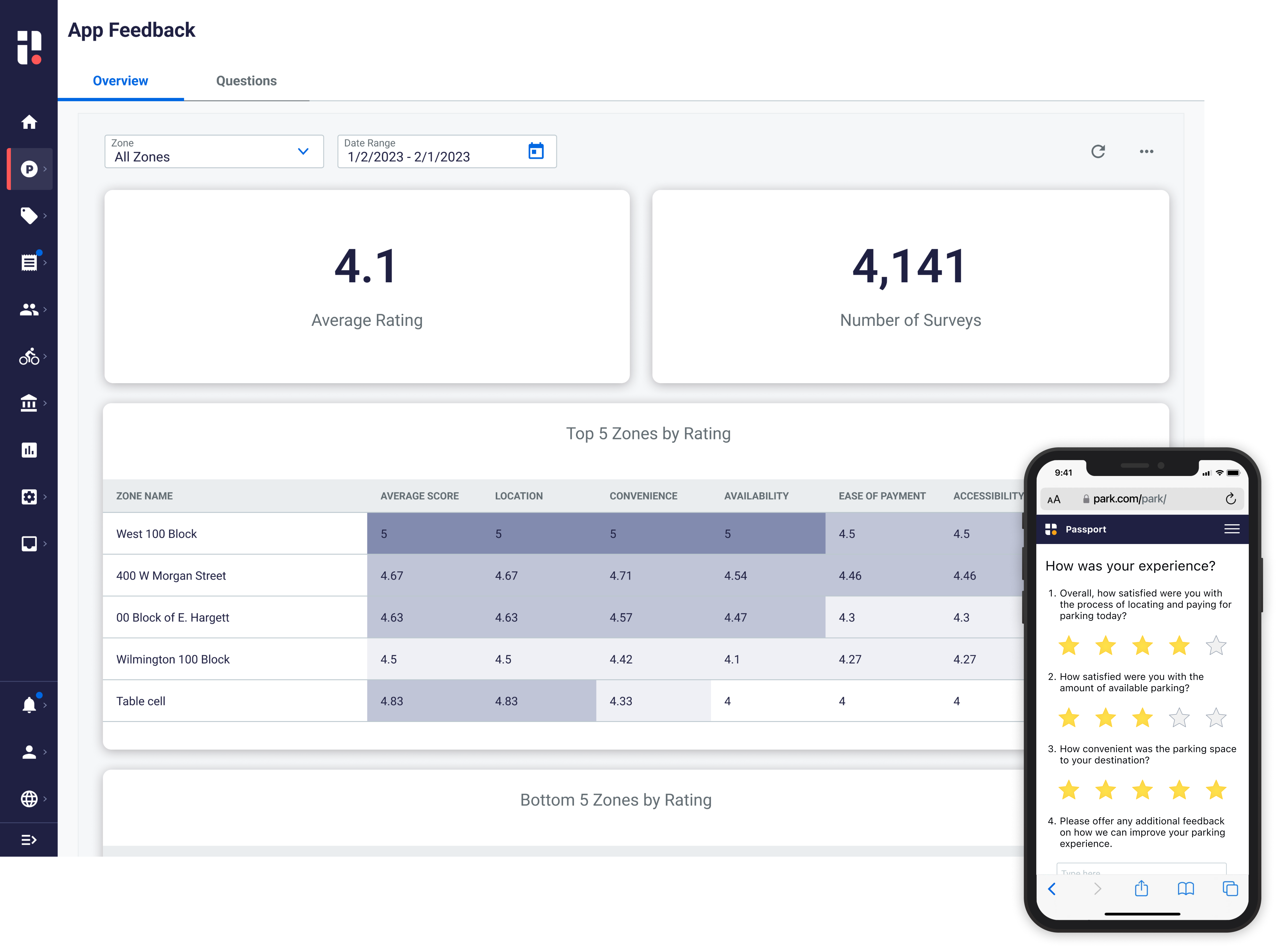 - Upon completing a parking payment, users are asked to rate their experience, provide open-ended feedback and more.